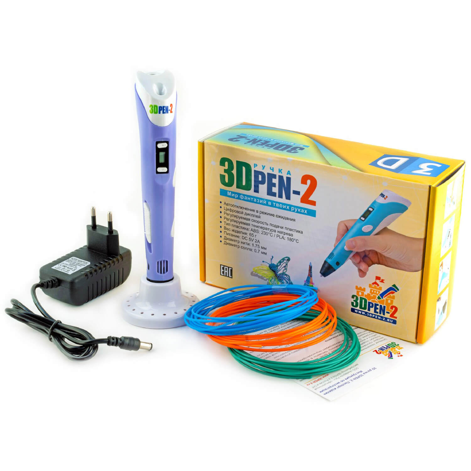 Набор с 3D ручкой 3DPEN-2 отлично подойдет не только для повседневного использования и развития ребенка, но и для оригинального, чрезвычайного полезного подарка. В комплект набора входит 3D ручка 3DPEN-2, 10 мотков цветного пластика по 10 метров (тип PLA, безвреден для ребенка и не источает токсичного запаха при использовании), а также 20 уникальных трафаретов, которые помогут ребенку научиться пользоваться 3D ручкой и создать свои первые объемные рисунки.